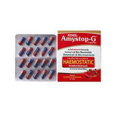 Aimil Amystop-G Capsule is a herbal formulation designed to manage abnormal uterine bleeding and related gynecological disorders. It contains potent hemostatic herbs that help control excessive menstrual flow while reducing pelvic inflammation. This ayurvedic blend also supports hormonal balance, improves reproductive health, and relieves associated discomfort. Ideal for women experiencing heavy periods, fibroids, or hormonal imbalance, it offers safe and natural menstrual care.