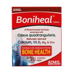 Aimil Boniheal Tablets aid in the recovery of fractures and bone injuries by accelerating the healing process and improving bone mineral density. It is enriched with herbal ingredients that naturally support calcium absorption and bone tissue repair. Ideal for individuals recovering from orthopedic surgeries or bone trauma.