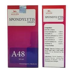 Allen A48 Spondylytis Drops 30 ml allen a48 spondylytis drops, a 30 ml solution, is a pharmaceutical product designed to provide relief for individuals suffering from spondylytis, an inflammatory condition affecting the spine. This homeopathic remedy, formulated with meticulous care, contains a unique blend of active ingredients specifically chosen to address the symptoms associated with Spondylytis. The drops are easy to administer, offering a convenient and effective solution for managing this debilitating condition. Allen A48 Spondylytis Drops is a trusted choice for those seeking relief from the discomfort and pain associated with Spondylytis.