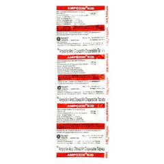 Ampoxin Kid 125mg Tablet 10’S contains Ampicillin, an antibiotic used in children to treat various bacterial infections such as respiratory tract infections, ear infections, skin infections, and urinary tract infections. It is formulated in an age-appropriate strength for safe administration in paediatric patients. The tablet should be given exactly as prescribed, and the complete course must be finished even if symptoms improve early. Proper adherence ensures maximum effectiveness and prevents the emergence of resistant bacterial strains.