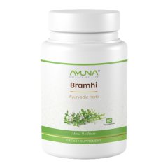 Ayuna Brahmi Veg Capsule is a brain-boosting herbal supplement containing Brahmi (Bacopa monnieri), a revered herb in Ayurveda for enhancing mental clarity and focus. It supports healthy brain function, improves memory retention, and reduces stress. Regular use helps promote relaxation and mental alertness. Made from pure herbal extracts, this vegetarian capsule is safe for long-term use.