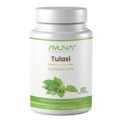 Ayuna Tulasi Veg Capsule 60’s contains pure extract of Tulasi (Holy Basil), a revered Ayurvedic herb known for its potent antioxidant and antimicrobial properties. Tulasi supports respiratory function by helping to clear mucus, ease breathing, and reduce the impact of seasonal allergies. It is traditionally used to strengthen the immune system, helping the body resist common colds, flu, and infections. The herb also supports stress relief by promoting mental calmness and emotional balance. Its adaptogenic nature helps the body cope with physical and environmental stressors effectively. Made with high-quality, plant-based ingredients, it is 100% vegetarian and free from harmful additives. Suitable for regular use under professional guidance.