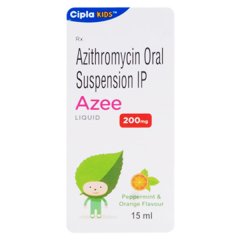 AZEE 200mg Liquid is a flavored oral suspension containing Azithromycin, a broad-spectrum antibiotic. It is mainly prescribed for children to treat bacterial infections of the respiratory tract, throat, ear, skin, and certain sexually transmitted diseases. The peppermint and orange flavours make the medicine more acceptable for young patients. Azithromycin works by stopping the growth of bacteria and providing quick relief from symptoms. It should be given in the exact dose prescribed by the doctor, based on the child’s age and weight. Complete the prescribed course to avoid antibiotic resistance. This product is safe for pediatric use when taken under medical guidance.