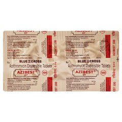Azibest DT 100mg Tablet 3’S is a dispersible tablet formulation of Azithromycin designed for paediatric use. It is indicated for treating bacterial respiratory tract infections, ear infections, and certain skin infections in children. The dispersible form dissolves in water for easy administration, making it suitable for children who have difficulty swallowing tablets. It should be given in the prescribed dosage for the full course to ensure complete recovery and to prevent antibiotic resistance.