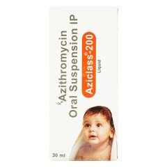 Aziclass 200mg Syrup 30ml contains Azithromycin in a paediatric-friendly syrup form, indicated for bacterial respiratory tract infections, ear infections, and certain skin infections. The pleasant taste aids in compliance, particularly for children. This antibiotic works by halting bacterial protein synthesis, thereby preventing bacterial growth. It should be administered according to the prescribed dosage, and the full course must be completed to ensure effective treatment and to reduce the risk of resistance.