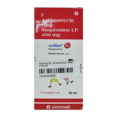 Azifine XL Suspension 30ml is an extended-release paediatric antibiotic containing Azithromycin, designed for once-daily dosing. It is indicated for bacterial infections of the respiratory tract, skin, and ears. The XL formulation provides prolonged antibacterial activity, improving convenience and adherence. The suspension has a palatable flavour for better acceptance by children. Administer as directed by the physician, and complete the full course for optimal results.