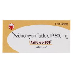 AZIFORCE 500mg Tablet 3’s contains Azithromycin, a potent macrolide antibiotic used to treat bacterial infections such as bronchitis, pneumonia, skin infections, and ear infections. Its high-dose formulation is suitable for short-course treatment, often improving compliance. Azithromycin works by blocking bacterial protein synthesis, thereby stopping bacterial growth. It must be taken exactly as prescribed, with the full course completed to ensure effective treatment and prevent resistance.