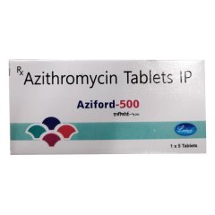 AZIFORD 500 Tablet 5’s contains Azithromycin, a potent macrolide antibiotic indicated for moderate to severe bacterial infections including pneumonia, bronchitis, skin infections, and certain sexually transmitted diseases. The higher dosage allows for shorter treatment durations, enhancing compliance. It works by stopping bacterial growth through protein synthesis inhibition. Follow the prescribed dosing schedule and complete the full course to achieve the best results and prevent resistance.
