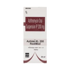 Azilide XL 200mg Redimed Suspension 30ml is a higher-strength extended-release paediatric antibiotic formulation with Azithromycin. It is used for respiratory tract, skin, and ear infections, offering the convenience of once-daily dosing. The ready-to-use formulation ensures quick administration without mixing. Azithromycin works by stopping bacterial protein synthesis, preventing the spread of infection. Administer as prescribed and complete the full course for maximum effectiveness.