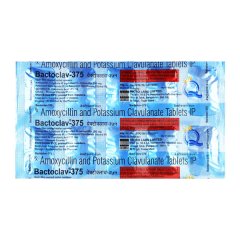 Bactoclav 375mg Tablet is a combination antibiotic containing Amoxicillin and Clavulanic Acid, used to treat various bacterial infections. Amoxicillin attacks bacterial cell walls, while Clavulanic Acid prevents bacterial resistance by inhibiting beta-lactamase enzymes. This combination provides enhanced effectiveness against resistant strains. It is commonly prescribed for respiratory tract infections, urinary tract infections, and skin and soft tissue infections. The medication should be taken at evenly spaced intervals and for the full course prescribed to ensure complete recovery and prevent resistance.
