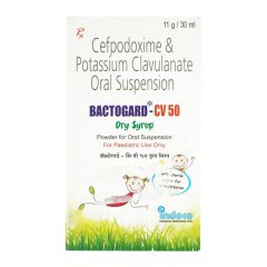 Bactogard CV 50mg Dry Syrup contains Cefpodoxime and Clavulanic Acid, providing enhanced antibacterial activity against beta-lactamase–producing bacteria. It is indicated for pediatric respiratory tract infections, urinary tract infections, and skin infections. The dry syrup should be reconstituted with water before administration and stored according to the manufacturer’s guidelines. Accurate measurement of doses is essential for safe and effective treatment. Completing the full course ensures effective recovery and reduces the risk of antibiotic resistance.