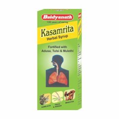 Baidyanath Kasamrit Herbal Syrup is a natural remedy for cough, cold, and respiratory discomfort. Formulated with Tulsi, Mulethi, Vasaka, and other Ayurvedic herbs, it soothes throat irritation, helps clear mucus, and supports healthy lung function. The syrup also boosts immunity and promotes faster recovery from seasonal infections. Safe for both adults and children, it offers gentle yet effective relief from respiratory troubles.