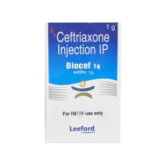 Biocef 1gm Injection contains Ceftriaxone, a third-generation cephalosporin antibiotic with strong activity against gram-positive and gram-negative organisms. It is indicated for severe infections such as pneumonia, septicemia, meningitis, urinary tract infections, and abdominal infections. This injection is administered intramuscularly or intravenously by a qualified healthcare provider. Ceftriaxone works by inhibiting bacterial cell wall synthesis, leading to bacterial death. Full adherence to the treatment regimen is critical to achieve optimal outcomes and prevent resistance.