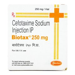 Biotax 250mg Injection provides Cefotaxime in a lower dose, ideal for pediatric patients or for treating mild bacterial infections. It is effective against a wide variety of gram-positive and gram-negative organisms. The injection is given intramuscularly or intravenously by a trained medical professional. Cefotaxime disrupts bacterial cell wall synthesis, resulting in bacterial death. It is essential to follow the prescribed course for complete recovery and to avoid the development of antibiotic resistance.