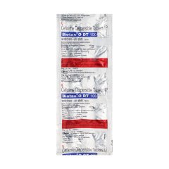 Biotax O DT 100mg Tablet contains Cefixime in a dispersible tablet form, ideal for children or those with swallowing difficulties. It is indicated for respiratory tract infections, urinary tract infections, and ear infections caused by susceptible bacteria. The tablet dissolves easily in water, making administration simple. Cefixime halts bacterial growth by inhibiting cell wall synthesis. It is essential to follow the prescribed dosage and complete the entire course for effective results and prevention of resistance.