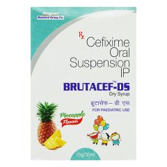 Brutacef DS Dry Syrup is a double-strength formulation of Cefixime for pediatric patients, offering enhanced antibacterial activity against respiratory tract infections, urinary tract infections, and otitis media. It requires reconstitution before use and should be shaken well prior to dosing. Cefixime works by inhibiting bacterial cell wall synthesis, leading to bacterial death. Completing the entire treatment course is important to ensure successful recovery and to prevent antibiotic resistance.