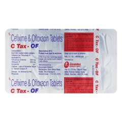 C Tax OF Tablet combines Cefotaxime, a cephalosporin antibiotic, with Ofloxacin, a fluoroquinolone, to provide a dual-action approach against a wide range of bacterial infections. This combination is particularly useful in treating mixed infections of the respiratory tract, urinary tract, and gastrointestinal tract. Cefotaxime inhibits bacterial cell wall synthesis, while Ofloxacin disrupts bacterial DNA replication. The oral tablet should be taken as prescribed, with the full course completed to ensure full recovery.