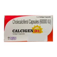Calcigen D3 60K Capsule 4’S is a high-potency vitamin D3 supplement, providing 60,000 IU per capsule. This product is designed to support bone health and calcium absorption, essential for maintaining strong bones and teeth. Each pack contains four capsules, offering a convenient solution for daily supplementation. Calcigen D3 60K Capsule 4’S is an ideal choice for individuals with vitamin D deficiency or those seeking to boost their daily intake of this vital nutrient.