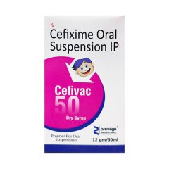 CEFIVAC 50 Dry Syrup 30ml is a pediatric antibiotic for mild bacterial infections. Supplied as a dry powder, it is reconstituted into a flavoured liquid for easy administration. CEFIVAC works by inhibiting bacterial growth, promoting faster recovery and symptom relief. The pleasant taste ensures better compliance in children. Use strictly as prescribed by a pediatrician for safe and effective therapy.