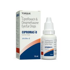 Cipromac D Eye Drops 10ml, a potent ophthalmic solution, contains the active ingredient Ciprofloxacin HCl. This medication is primarily used to treat bacterial conjunctivitis, an inflammation or infection of the outermost layer of the eye and inner eyelid. Ciprofloxacin works by inhibiting bacterial DNA synthesis, thereby eliminating the bacteria causing the infection. The 10ml bottle provides a convenient dosage for effective treatment. Use as directed by your healthcare provider for optimal results.
