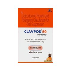 Clavpod 50 Pineapple Flavour Dry Syrup 30ml is a pediatric antibiotic formulated for mild bacterial infections. Supplied as a dry powder, it is reconstituted into a flavoured syrup for easier administration. Clavpod works by inhibiting bacterial growth, promoting faster recovery and symptom relief. The pineapple flavour improves compliance in children. Use strictly as prescribed by a pediatrician for safe and effective therapy.