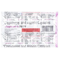 Clopican A 75/75 Capsule 10’s is a pharmaceutical treatment designed to help manage and prevent blood clots. Each capsule contains a combination of 75mg Apixaban and 75mg Aspirin, providing dual anticoagulant and antiplatelet effects. This medication is indicated for the prevention of stroke and systemic embolism in patients with non-valvular atrial fibrillation. It is also used to treat deep vein thrombosis (DVT) and pulmonary embolism (PE). Always follow your healthcare provider’s instructions for proper usage, as individual responses may vary.