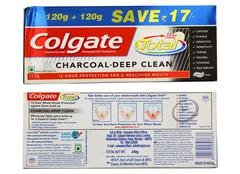 Colgate Total Charcoal Deep Clean Toothpaste (Pack of 2 x 120 gm) colgate total charcoal deep clean toothpaste (pack of 2 x 120gm) offers a powerful, refreshing dental care solution. This toothpaste, enriched with activated charcoal, effectively removes surface stains for a visibly whiter smile. Its unique formula, containing the total system of essential ingredients, helps prevent plaque, gingivitis, and cavities. The charcoal deep clean action also helps reduce bad breath, ensuring freshness all day long. Experience the invigorating freshness and deep clean sensation with Colgate Total Charcoal Deep Clean Toothpaste. Improve your oral hygiene routine with this premium toothpaste, now available in a convenient pack of two 120g tubes.