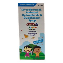 Corex LS Junior Mixed Fruit Flavour Cough Syrup is a pediatric formulation for treating wet cough, chest congestion, and breathing discomfort. It combines Ambroxol, Guaiphenesin, and Levosalbutamol to help loosen mucus, ease coughing, and open airways. Its sugar-free, child-friendly flavor ensures easy administration and compliance. Always use as advised by a pediatrician for safe and effective relief.
