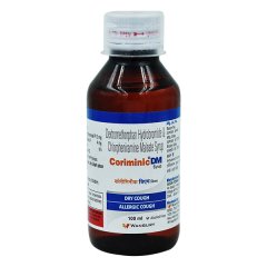 Coriminic DM Syrup is formulated to relieve dry, irritating coughs associated with colds and allergies. It contains Dextromethorphan to suppress cough and Chlorpheniramine to combat allergic reactions. Suitable for both children and adults, this syrup helps improve breathing comfort without causing significant drowsiness. Always consult your doctor before use, especially for children.