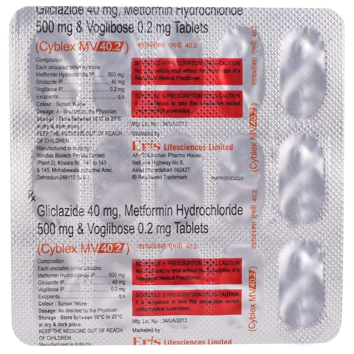 Cyblex MV 40.2 Tablet is a prescription anti-diabetic formulation used for effective management of type 2 diabetes mellitus. It combines Glimepiride, Metformin, and Voglibose, which work together to regulate blood glucose levels. This triple-action therapy helps improve insulin sensitivity, reduce glucose production in the liver, and slow carbohydrate absorption in the intestine. Cyblex MV 40.2 is beneficial in preventing blood sugar fluctuations and diabetes-related complications. It should be taken with meals as directed by a healthcare provider. Regular monitoring of blood glucose levels is advised. This medicine should only be used under medical supervision.