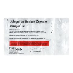 Dabigat 150mg Capsule 10’S dabigatran etexilate, marketed as dabigat 150mg capsules, is a prescription medication used for the prevention of stroke and blood clots in patients with atrial fibrillation, a type of irregular heartbeat. Each capsule contains 150mg of dabigatran etexilate, a direct thrombin inhibitor. This oral medication is taken twice daily, as directed by your healthcare provider. Dabigatran helps prevent blood clots from forming and reduces the risk of potentially life-threatening complications such as stroke or blood clots in the deep veins of the legs. It is essential to follow your doctor’s instructions carefully when taking Dabigat 150mg Capsules to ensure optimal effectiveness and safety.