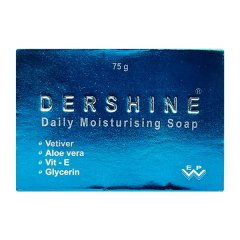Dershine Soap 75gm: A nourishing soap formulated to combat dry skin. Enriched with moisturizing ingredients, it helps restore skin’s natural moisture balance, leaving it soft, smooth, and revitalized. Ideal for daily use, this soap gently cleanses while providing long-lasting hydration. Experience the difference with Dershine Soap 75gm, your ally against dry skin.