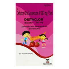 DISTACLOR 187 MG STRAWBERRY FLAVOUR Oral Suspension 30ml is a pediatric antibiotic indicated for mild bacterial infections. Its liquid formulation ensures accurate dosing and convenient administration. DISTACLOR works by inhibiting bacterial growth, promoting faster recovery and symptom relief. The strawberry flavour improves compliance among children. Use strictly as prescribed by a pediatrician for safe and effective therapy.