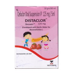 DISTACLOR STRAWBERRY FLAVOUR 125mg Oral Suspension 60ml is a pediatric antibiotic formulated for mild bacterial infections. Its liquid formulation ensures accurate dosing and convenient administration. DISTACLOR works by inhibiting bacterial growth, promoting faster recovery and symptom relief. The pleasant strawberry flavour improves compliance among children. Use strictly as prescribed by a pediatrician for safe and effective therapy.