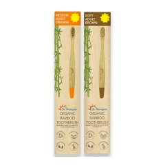 Dr.Morepen Organic Bamboo Adult Toothbrush Combo Pack (Medium – Orange 1’s + Soft – Brown 1’s)