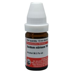 Dr. Willmar Schwabe Acidum Nitricum 1M Drops 10 ml is a homeopathic remedy designed to alleviate symptoms associated with hypersensitivity, anxiety, and restlessness. This potent solution, prepared by renowned pharmaceutical company Dr. Willmar Schwabe, contains the active ingredient Nitric acid in a 1M dilution. The drops are ideal for individuals experiencing emotional instability, irritability, and fearfulness, offering a natural alternative for managing these symptoms. With a convenient 10 ml bottle size, this product is easily incorporated into daily wellness routines for long-term relief.