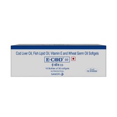 E-Cod Omega Softgels 30’s are a dietary supplement rich in essential omega-3 fatty acids, specifically EPA and DHA. These softgels support heart health, brain function, and overall wellness. Each softgel provides 1000mg of omega-3s, contributing to a balanced diet and promoting healthy triglyceride levels. E-Cod Omega Softgels are easy to swallow and offer a convenient way to incorporate omega-3s into your daily routine. Enhance your health with the benefits of E-Cod Omega Softgels 30’s.