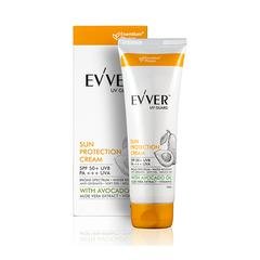Evver Sun Protection UV Guard SPF 50 PA+++ Cream offers high-level protection against harmful UVA and UVB rays, helping to prevent sunburn, tanning, and premature aging. Its lightweight, non-greasy formula absorbs quickly into the skin, making it comfortable for daily wear. Enriched with skin-conditioning ingredients, it not only protects but also hydrates the skin, keeping it soft and supple. This sunscreen is suitable for all skin types and can be worn under makeup without leaving a white cast. With consistent use, it safeguards your skin against photoaging and maintains a healthy, youthful glow.