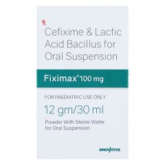 FIXIMAX 100mg Oral Suspension 30ml is an oral antibiotic indicated for mild to moderate bacterial infections. Its liquid form allows accurate dosing and convenient administration. FIXIMAX works by inhibiting bacterial growth, promoting faster recovery and symptom relief. Suitable for children and adults, it should be taken strictly as prescribed by a healthcare professional for safe and effective therapy.