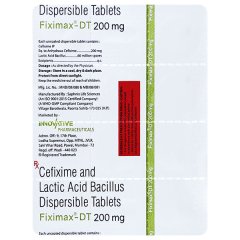 FIXIMAX DT 200mg Dispersible Tablet 10’s is an oral antibiotic indicated for mild to moderate bacterial infections. Its tablet formulation dissolves in water for easy administration, making it suitable for children and adults. FIXIMAX works by inhibiting bacterial growth, promoting faster recovery and symptom relief. Always take as prescribed by a healthcare professional for safe and effective therapy.
