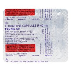 Flunil 60mg Capsule 10’S is a pharmaceutical treatment designed to help manage symptoms of depression. Each capsule contains 60mg of the active ingredient Fluoxetine, a selective serotonin reuptake inhibitor (SSRI). This medication works by increasing the levels of serotonin in the brain, helping to improve mood and alleviate symptoms of depression. The Flunil 60mg Capsule 10’S is a convenient, easy-to-use dosage form, providing a 10-capsule supply for your convenience. Always follow your healthcare provider’s instructions for proper usage and dosage. Flunil may take several weeks to take full effect, so it’s important to continue taking it as directed even if you feel better. Consult your doctor if you experience any side effects or have questions about your treatment.