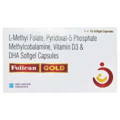 Folican Gold Capsule 10’s is a high-potency dietary supplement containing 10mg of folic acid, essential for cell growth and tissue repair. This supplement supports healthy brain function, particularly during pregnancy and infancy. It also plays a crucial role in the production of red blood cells and DNA synthesis. Folican Gold Capsule 10’s is an ideal choice for individuals seeking to maintain optimal folate levels for overall health and wellness.