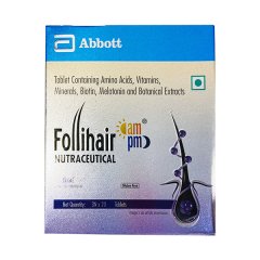 FOLLIHAIR AM/PM Gluten Free Tablet 20’s experience hair growth and vitality with follihair am/pm gluten-free tablets, a 20-count daily regimen. These tablets are meticulously formulated to support healthy hair growth from within. The unique AM/PM formula ensures optimal nutrient absorption, promoting stronger, thicker, and shinier hair. Enhance your hair care routine with FOLLIHAIR Gluten-Free Tablets, designed to nourish your hair and scalp for a more confident you.