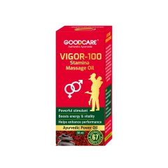 Goodcare Vigor 100 Stamina Massage Oil is a specially formulated Ayurvedic blend designed to improve stamina, strength, and overall vitality. Infused with potent herbal extracts, it nourishes the body, relaxes muscles, and stimulates healthy blood circulation. Regular massage with this oil can help reduce fatigue, improve energy levels, and promote physical endurance. Its natural composition ensures deep absorption without harmful side effects, making it suitable for daily use.