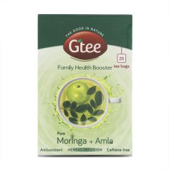 GTEE Moringa + Amla Tea Bags combine the superfood benefits of moringa leaves with the vitamin C richness of amla. This powerful herbal blend boosts immunity, supports healthy digestion, and promotes natural detoxification. Moringa provides essential nutrients and antioxidants, while amla enhances vitality and skin health. Naturally caffeine-free, it can be consumed daily for overall wellness. Each tea bag is hygienically packed to preserve freshness and nutrients.
