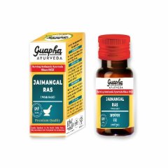 Guapha Ayurveda Jaimangal Ras (with Gold) Tablet is a powerful Ayurvedic preparation containing Swarna Bhasma for enhanced therapeutic benefits. Traditionally used for managing heart and respiratory conditions, it also boosts immunity and supports faster recovery from prolonged illnesses. This herbal-mineral blend helps maintain energy, reduce weakness, and improve resilience against infections. Prepared with strict adherence to classical Ayurvedic principles, it ensures quality, purity, and effectiveness. Ideal for regular use under expert guidance, it provides comprehensive health support for long-term wellness.