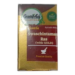 Guapha Ayurveda Swas Chintamani Ras (with Gold) Tablet 30’s is a potent respiratory health supplement enriched with Swarna Bhasma and other Ayurvedic ingredients. It helps manage conditions like asthma, breathlessness, and chronic lung issues while supporting overall immunity. This formulation enhances energy levels, promotes better oxygen intake, and aids long-term respiratory wellness. Best taken under Ayurvedic supervision for safe and effective results.