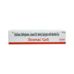Iconac Gel 30gm is a topical medication designed to provide relief from localized pain, inflammation, and swelling. The active ingredient, Ibuprofen, is a non-steroidal anti-inflammatory drug (NSAID) that works by inhibiting the enzyme cyclooxygenase, thereby reducing prostaglandin synthesis and alleviating pain and inflammation. This gel is ideal for individuals seeking a convenient, easy-to-apply formulation for temporary relief of minor aches and pains, including arthritis, sprains, strains, and muscle pain. Use as directed for optimal results. Always consult a healthcare professional for proper usage and potential interactions with other medications.
