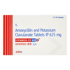ICPAMOX CV 625 Tablet 10’s is an oral combination antibiotic indicated for severe bacterial infections. Its tablet form ensures accurate dosing and convenient administration. ICPAMOX CV works by inhibiting bacterial growth, promoting faster recovery and effective symptom relief. Follow the prescribed dosage under medical guidance for safe and effective therapy.
