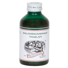 Kairali Balaswagandhadi Thailam is a rejuvenating Ayurvedic massage oil prepared with nourishing herbs in a coconut oil base. Known for strengthening muscles, bones, and nerves, it is highly recommended for children, the elderly, and those recovering from weakness or illness. It helps improve stamina, supports bone density, and enhances overall physical endurance. Regular use promotes flexibility, vitality, and healthy growth in children while improving mobility and energy levels in adults. This oil is safe for long-term application under Ayurvedic guidance for holistic health and wellness.